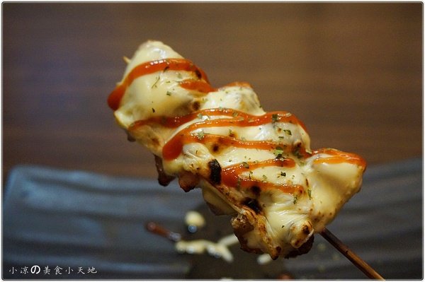 居酒屋內也有邪惡的牽絲起司,搭配鮮嫩的土雞肉會迸出蝦咪樣的火花呢?很具創意的燒烤類,採用土雞肉吃起來都相當的鮮嫩,舖上的起司除了邪惡的牽絲以外,那濃厚的香氣也引人犯罪,一串怎夠看嘛?