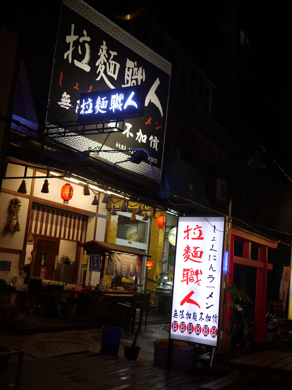 從福科路愛買旁邊的麥當勞與肯德基中間那條巷子走進去後,遠遠就會看到三個廣告版,清清楚楚的寫著拉麵職人,第一次來可能會走錯,但其實挺好認的,這邊的店家並不多,只是一個小社區的感覺。