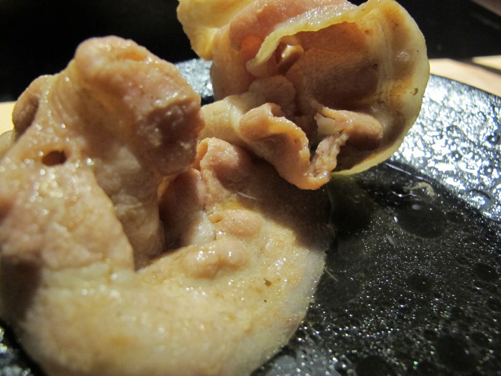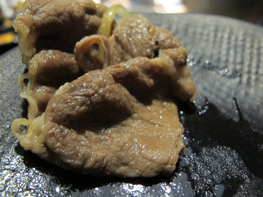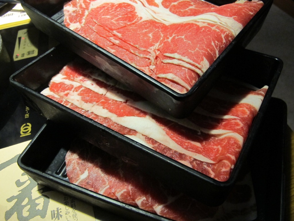 一開始先來了三盤肉片+一盤蔬菜,副食的部分則可以選擇要吃烏龍麵還是米飯。