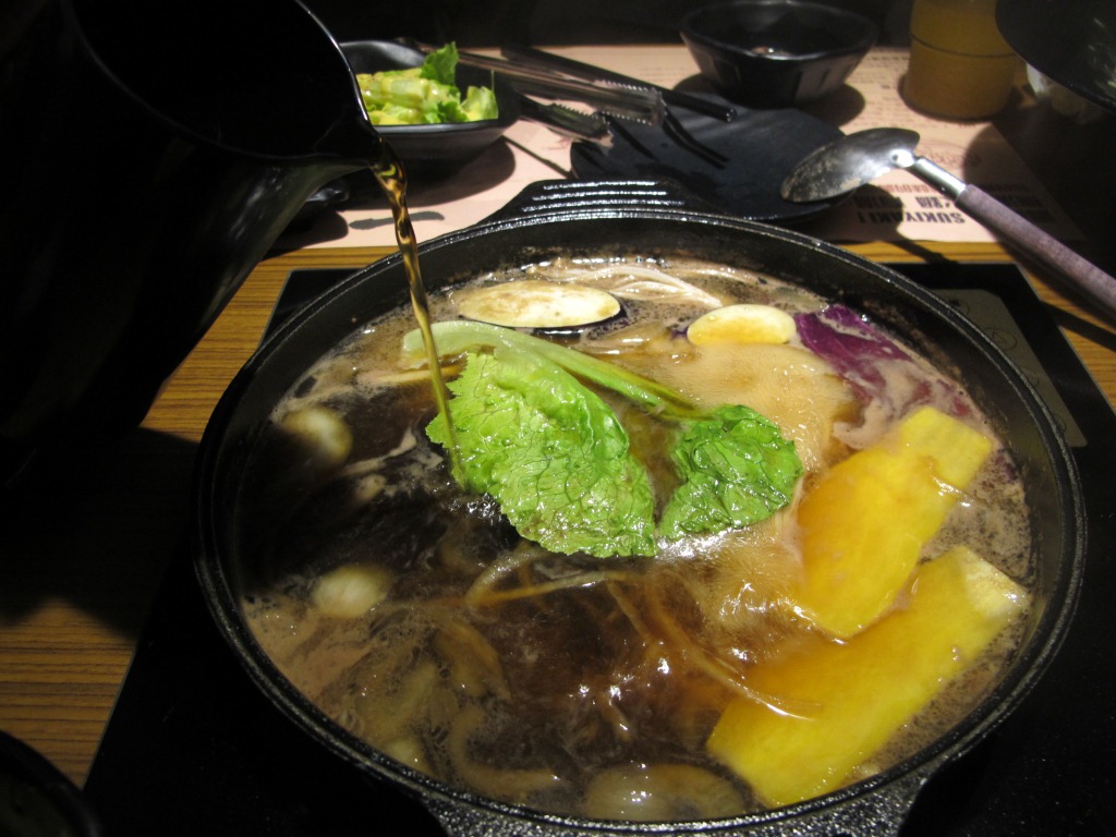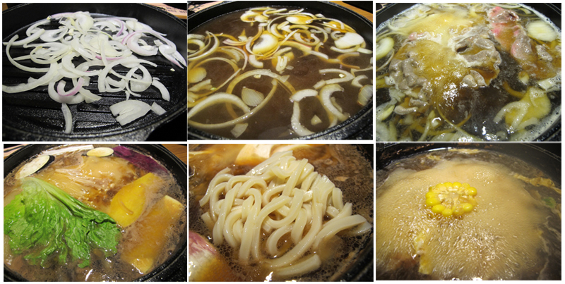 當然在上食材的同時,店員已經在幫我們準備壽喜燒的起鍋,先用洋蔥拌炒,讓洋蔥的香氣溢出,再加入壽喜燒的醬汁,就變成醬燒,就可以開心涮肉、菜、麵,然後把肚子填飽飽。
