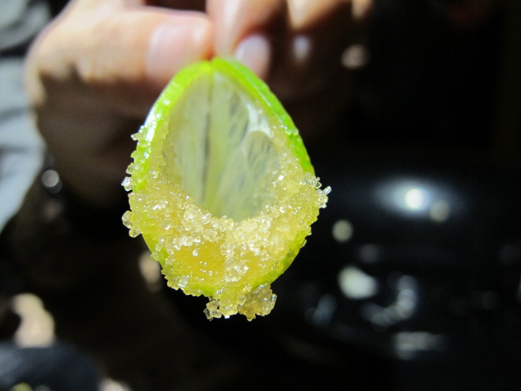 甜點是檸檬片跟日式抹茶冰淇淋,檸檬切的薄博的,再撒上細砂糖,吃進嘴裡一點點苦一點點酸,然後有砂糖的地方就會甜甜,可以把口感轉換一下,也可以解膩。