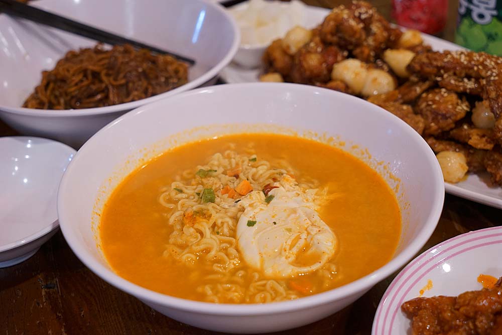 起司拉麵是每次來都會點的,雖然內容物真的挺空虛的,但這邊的蛋是屬於半熟的,再弄破攪拌著吃,湯頭會辣,有些海鮮湯底,麵條因為泡著會變比較軟,喜歡吃偏硬口感的就要趁早吃,個人是推薦的。