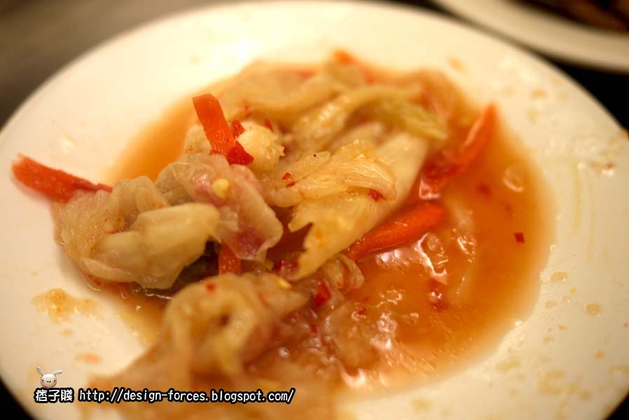 在菜還未上之前,店家會提供泡菜與豆干兩種小菜,這邊要跟大家強烈推薦,金海岸的泡菜超好吃的,酸酸辣辣的很對味,來這家店一定要品嚐它們的泡菜。