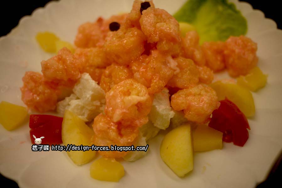 第六道菜是鳳梨蝦球,超讚的,一個人就默默的偷吃掉五顆去了!也是推薦美食之一。