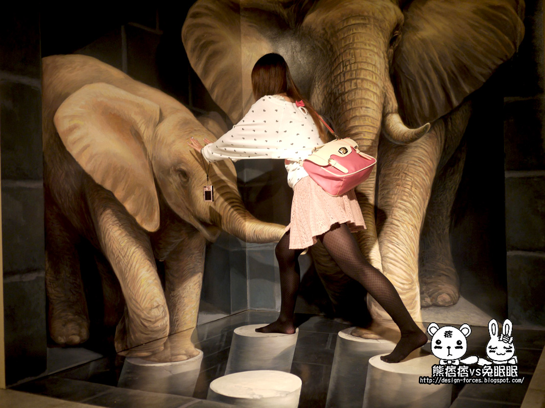 據說3D奇幻不思議展,總是吸引大批人潮,每拍一張圖後就要排隊等下一張,基於不想等待的情況下,熊痞痞跟兔眠眠特地挑選了非假日的時間去參觀,哪知道…排隊的人潮還是很多阿=口=!假日應該更誇張吧……