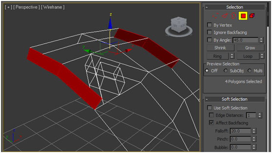 選取多邊形下達Symmetry(對稱)指令,使另一半邊的輪胎自動生成。