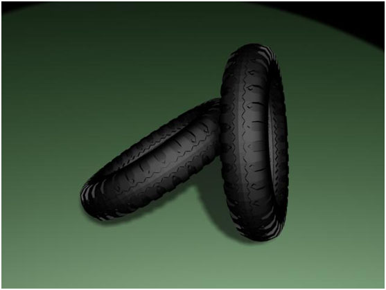 做到這,其實主要的輪胎模型已算完成了,通常還會再加上殼子,並依車子的大小需求來做修改,調整其大小位置,大致上的成果圖如下: