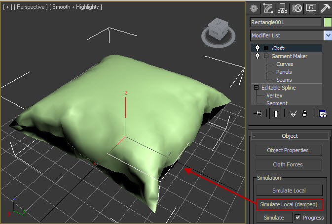 回到Cloth下,點選Simulate Local(damped)進行模擬,將會發現上下布料自動演算包覆,最後,枕頭就這樣輕鬆的製作出來囉!
