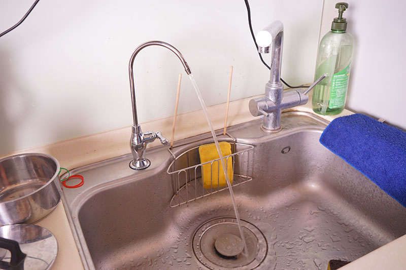 確認下面都安裝好後,就開始進行實際出水測試,大概反覆弄了幾次,確認出水狀況良好後,安裝師傅就開始進行收拾動作了。