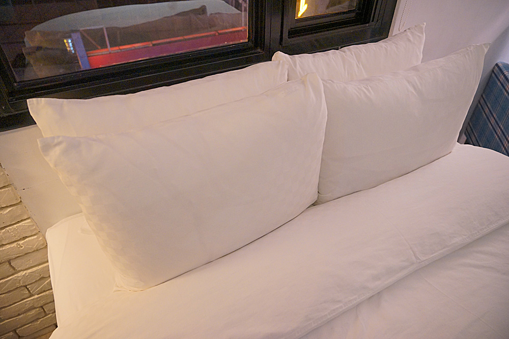 枕頭比照飯店式規格,有四顆唷!頓時老闆突然開口說道:「需要我展示睡覺的姿勢給大家看嗎?」