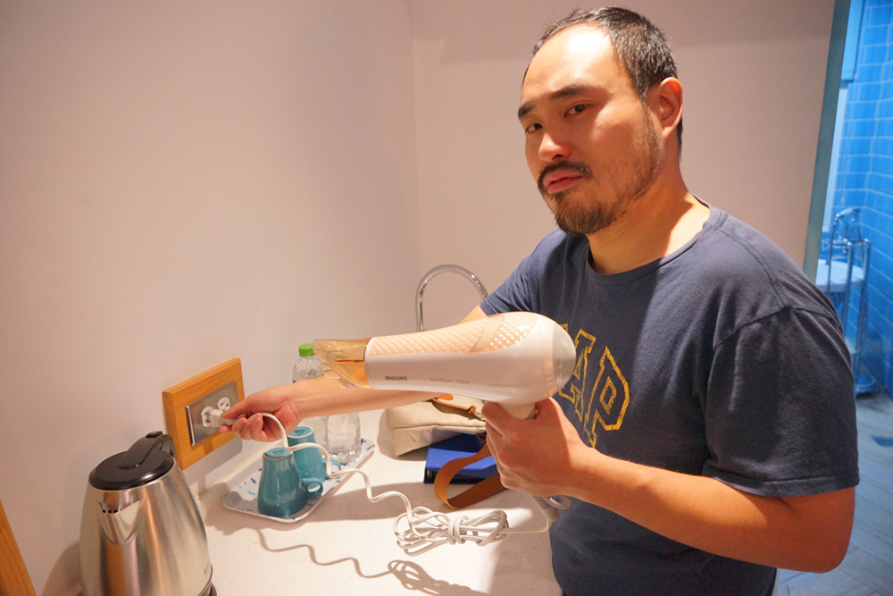 泡完澡後,當然就要吹一下頭毛了!讓老闆來為大家示範下。