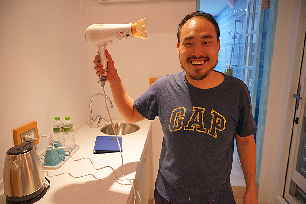 「而且我們民宿的特點就是,每一間都超級多的插頭,不論是想要站著插、躺著插!通通都有」老闆接著說。