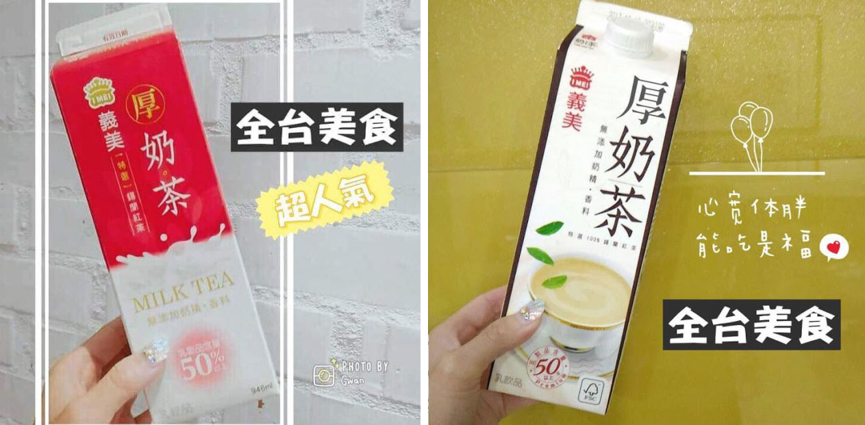 整體來說,厚奶茶是比較便宜但不好買到,如果透過代購就貴翻天,其實沒到非喝不可的程度,真的想要喝喝看得,就試試看超商有在賣的義美奶茶即可,想要炫耀的話,也可以跟我們一樣幫包裝上字,就變成白色版的義美厚奶茶了(單純耍憨行為….XD )。