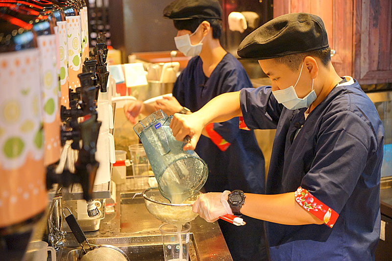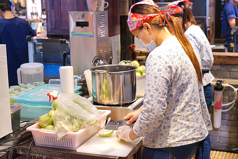 另一邊則有員工負責將切好的水果做成果汁,這裡的水果是皮與籽一起下去打得,所以喝到一些飲料的時候,也會很明顯感受到一些細微顆粒,例如樂見檸檬。