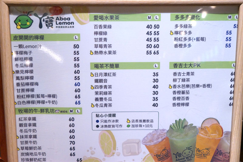 桃園知名飲料店阿寶檸檬首度進軍台中大遠百!開幕期間三款限量500杯飲料嚐鮮價只要10元,還有打卡免費送樂見檸檬