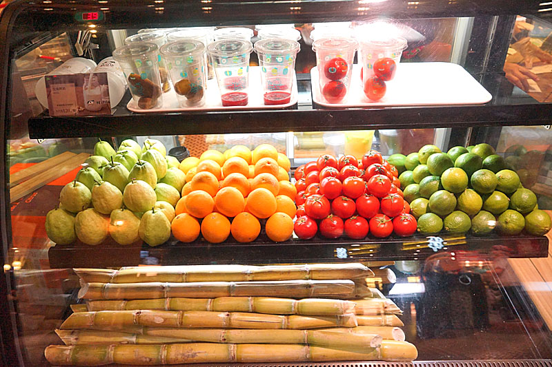 櫃台上與旁邊空處都擺置了不少的新鮮水果,水果都有特別挑過,因是連皮帶籽打的關係,還有經過活氧清洗程序來處理表面的農藥殘留。