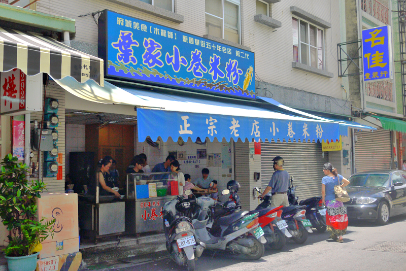 這次來台南的第一站美食,在”美女發發”地陪的帶領下,來到了葉家小捲米粉,據說這家店有60幾年的歷史了,很多名人都會專程跑下來吃這家的小捲米粉!我們去的時候大概是在11點左右,剛好不用排很久,但後來人潮越來越多,外面都站滿等位置的遊客,真的有點誇張(好險有提早去…)。