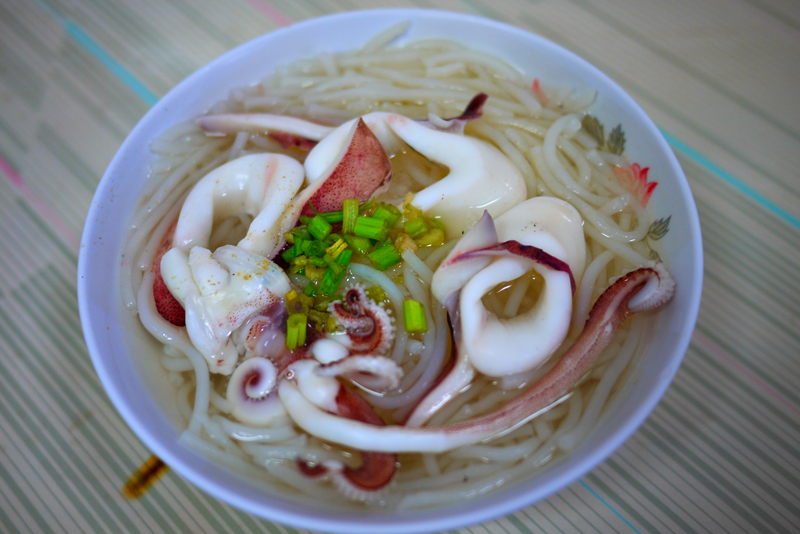 煮出來的小捲QQ脆脆的,很有咬勁,大概是因為一開始有冰鎮過的關係,小捲本身的鮮甜度都被保存的很好,跟湯頭混著一起吃時,小捲的鮮甜度都融入湯頭中,喝起來蠻清淡爽口又不失風味。