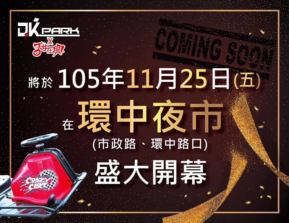 今天下午看到一中的【D.K PARK X 甜在興】在FB發佈環中夜市新開幕的訊息時,我還以為眼花了,這不是之前已經倒閉的夜市嗎?想當初開幕第一天就衝去看,還快速寫了幾間小吃攤的介紹,結果到第三天就因為都市計劃農業區用地的關係,導致關閉,而今年終於拿到營業執照,將於11/25重新開幕囉!(圖片取至於甜在興)。