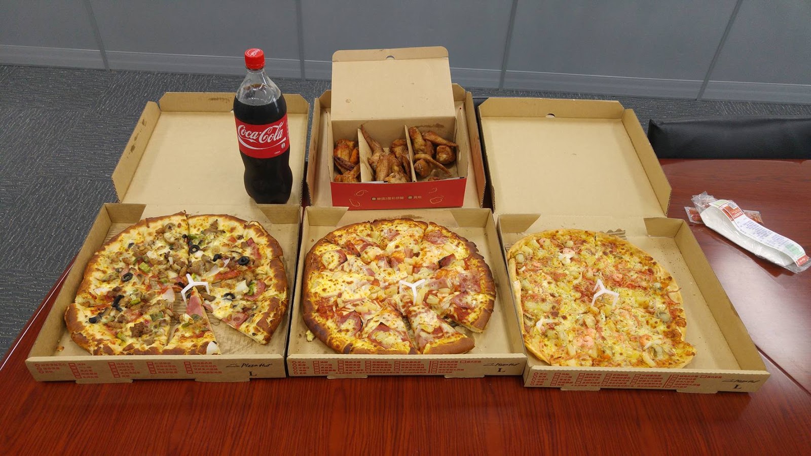 謝謝公司同事今天請我吃糖果、蛋糕、披薩等,我會想大家的!