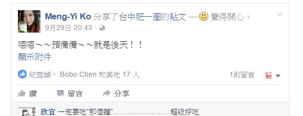 抽出第二名額:Meng-Yi Ko (但經查證後,只有分享無完成留言動作,不俱活動資格,將另外抽出一位。)