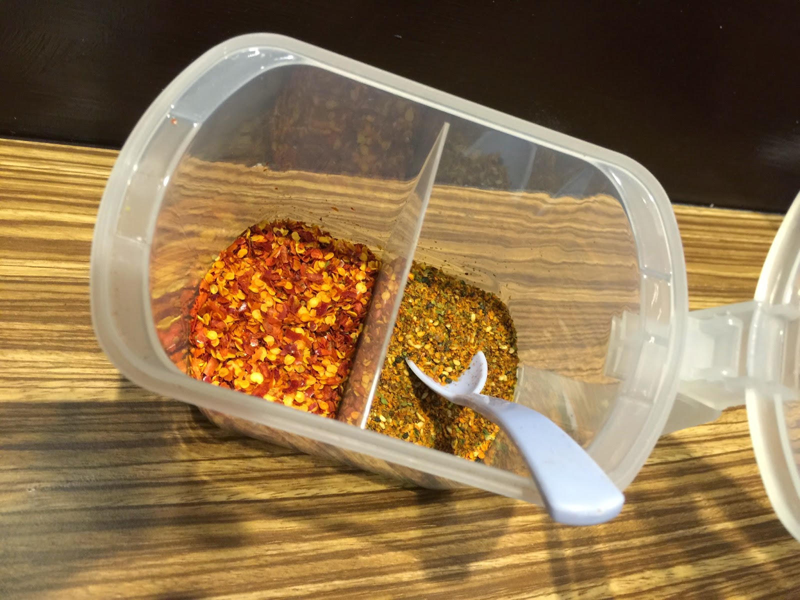 桌上的五味粉及花椒粒可以依個人喜好添加