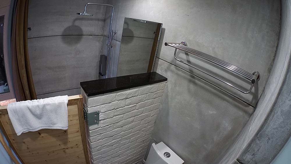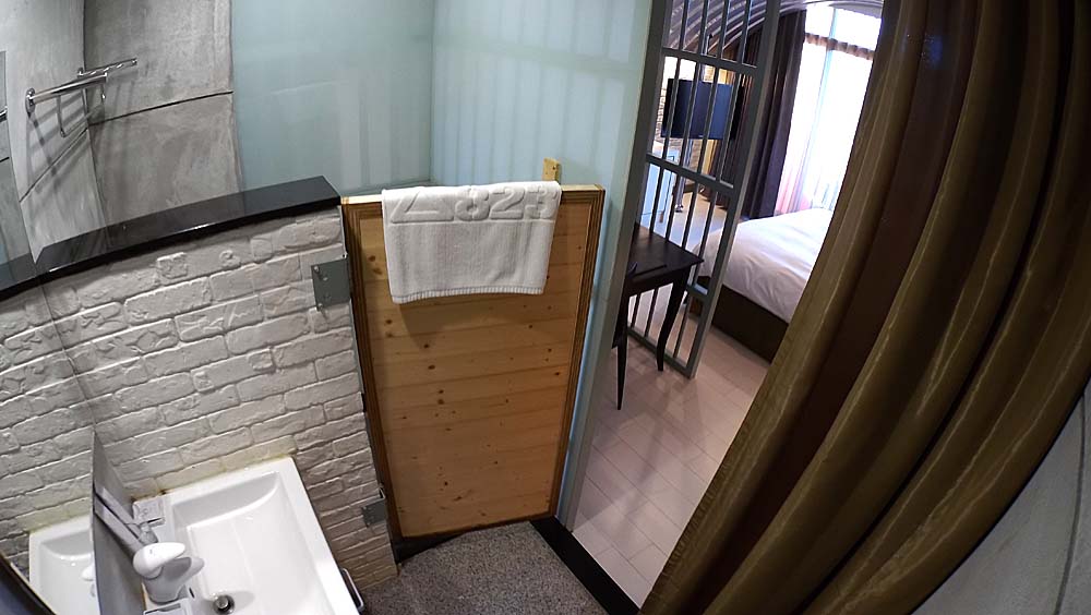 這裡的廁所就有點情趣了,是沒有門的,只有窗簾,沐浴的地方與廁所則是用木門隔開。