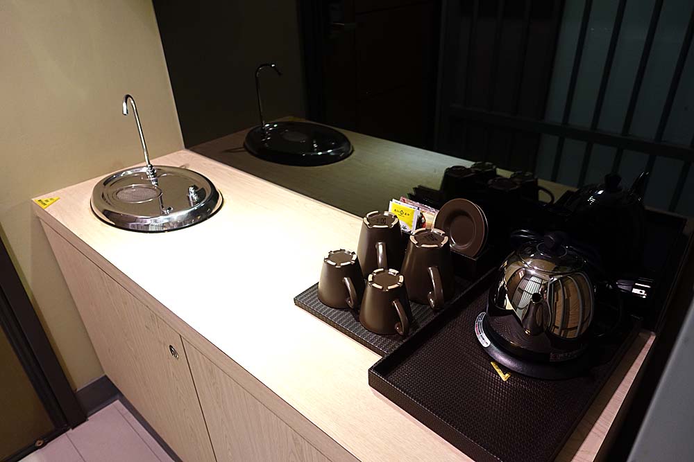 這裡沒有提供礦泉水,因為裡面的RO飲水機可直接飲用,想要煮熱泡茶也可以。