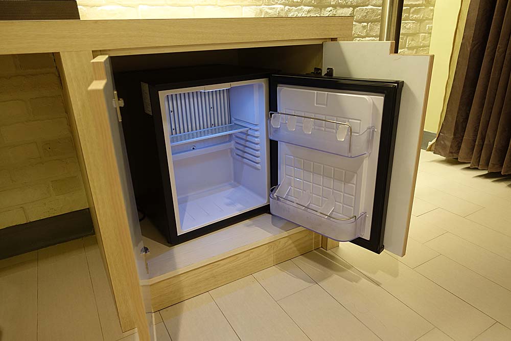 下面有冰箱可以使用,裡面是沒提供飲料的,有需要的可以去附近便利超商,離家飯店也很近。