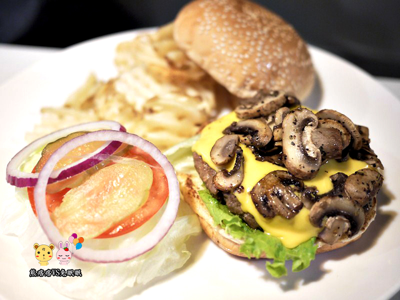 在介紹熊的餐點前,先讓大家瞧瞧阿mon點的240元的鮮摘蘑菇牛肉漢堡,拍起來好像比自己的有特色,蘑菇超顯眼的阿…冏。