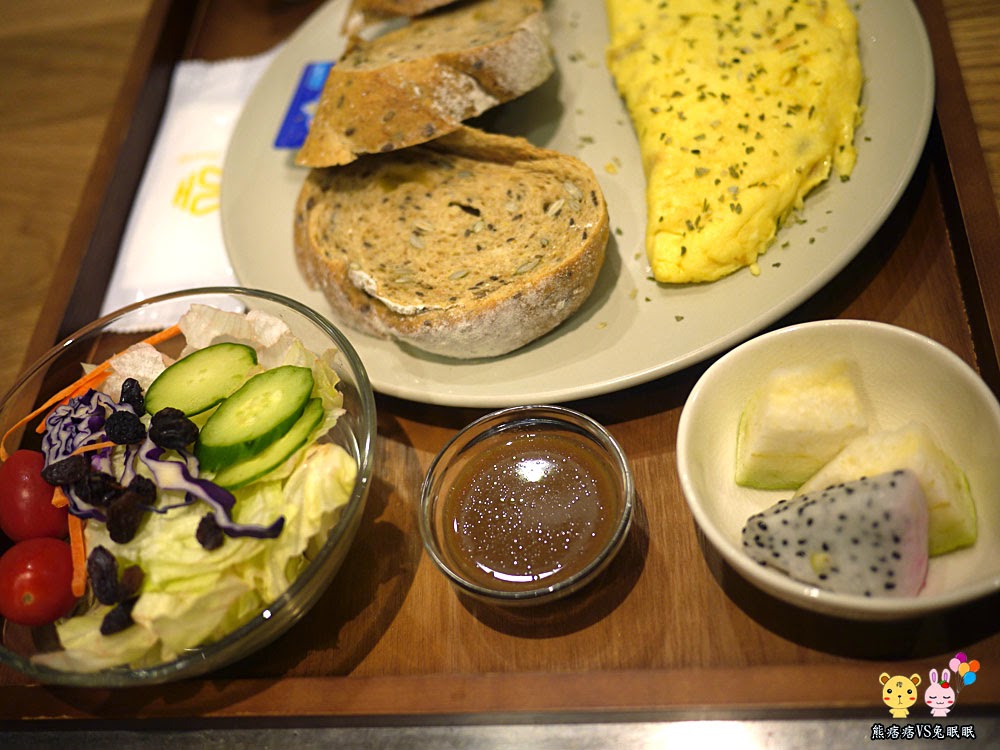 美好的早晨,脫離了溫暖的被窩,刷牙洗臉後,就拿著早餐券前往蜂巢 Bee House一樓大廳用餐,這邊的早餐比較不像飯店採用自助式的,反而像是咖啡廳似的感覺,點一份早餐,來一杯咖啡,是一種悠哉的愉悅享受。