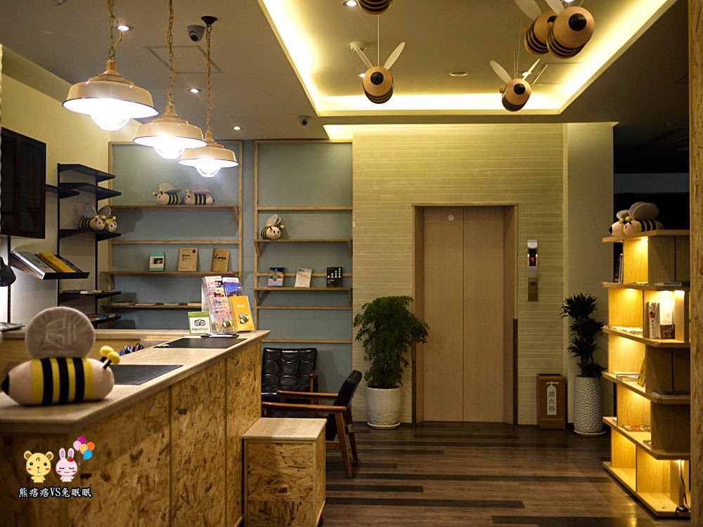 蜂巢的大廳,偏黃的色系,以蜜蜂為主題,四處都可以看到嗡嗡嗡的小蜜蜂。