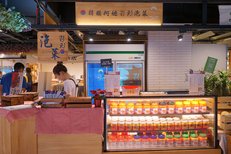 旁邊則是韓國阿嬤泡菜,一排排的泡菜就擺在櫥窗內。