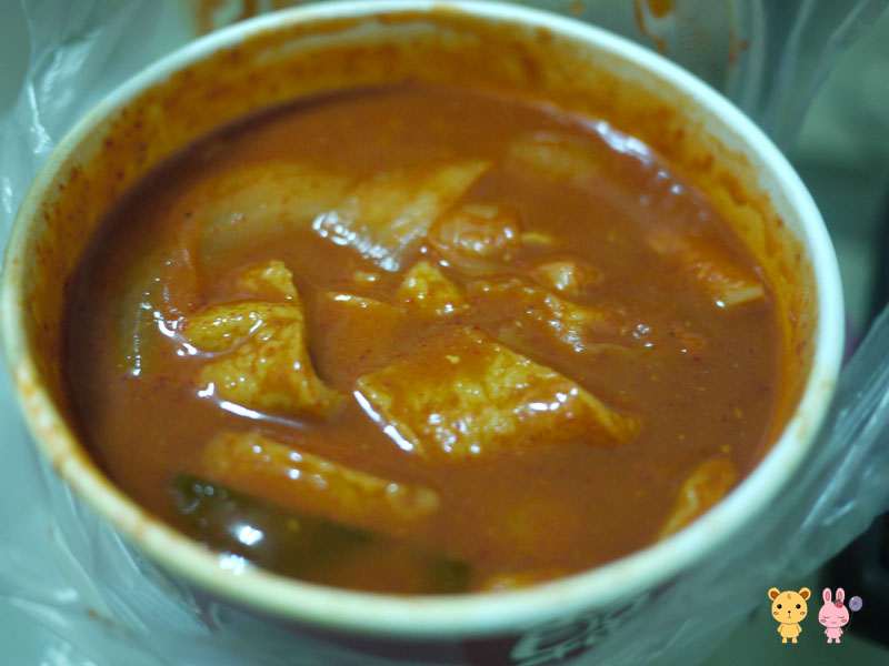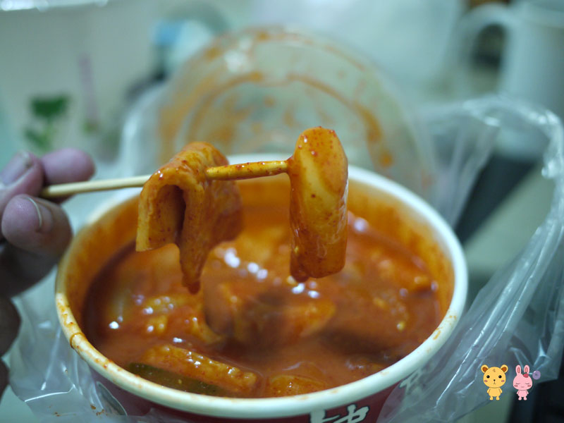 沒想到…吃下去後覺得,醬汁是蠻濃稠的,年糕小Q,可是整體味道好沒辣度的感覺(¬_¬)…一度讓我很失望,後來問了一位來自偽韓國的呆呆美女,他說,道地的年糕會辣滋滋的,不辣就不道地喔XD!