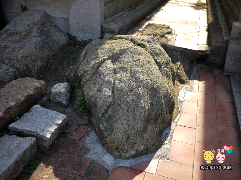 以上面這顆石頭來看,不知道的路人可能會直接忽視掉,然而這卻是山后村的龍脈所在之地,更有趣的是,這顆龍頭正好應正了所謂的神龍見首不見尾,它的龍尾藏匿在王氏宗祠處,有些導遊在解說時,也會告知遊客說,摸龍頭、摸龍耳、大富大貴一整年。