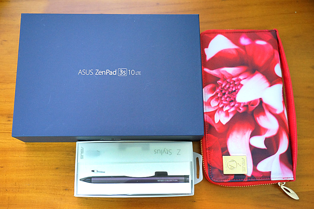 拆開包裝後長這樣,盒子蠻有質感的,現在購買ZenPad 3S 10 LTE,還附贈與蜷川實花聯名合作的手拿包(下方的觸控筆為選配)。