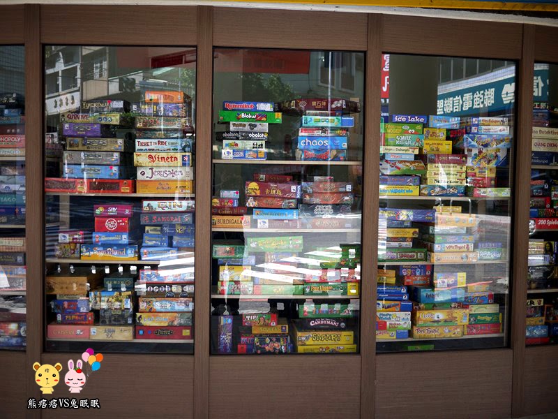 還沒進入店內,一片片透明的窗將店內的桌遊一一展示在外,看起來新舊遊戲都有,種類蠻多的,不像一些店家都只會放舊遊戲而已。