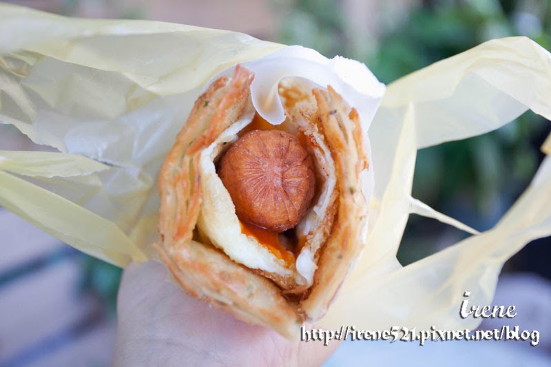 餅皮煎得很脆,中間淋上蕃茄汁,夾上熱狗後,有種酥脆柔軟的FU,只是偶爾皮會煎到焦掉…老闆都會跟我們說,要熱著吃才好吃,否則等冷了,皮會變軟了就不好吃了。
