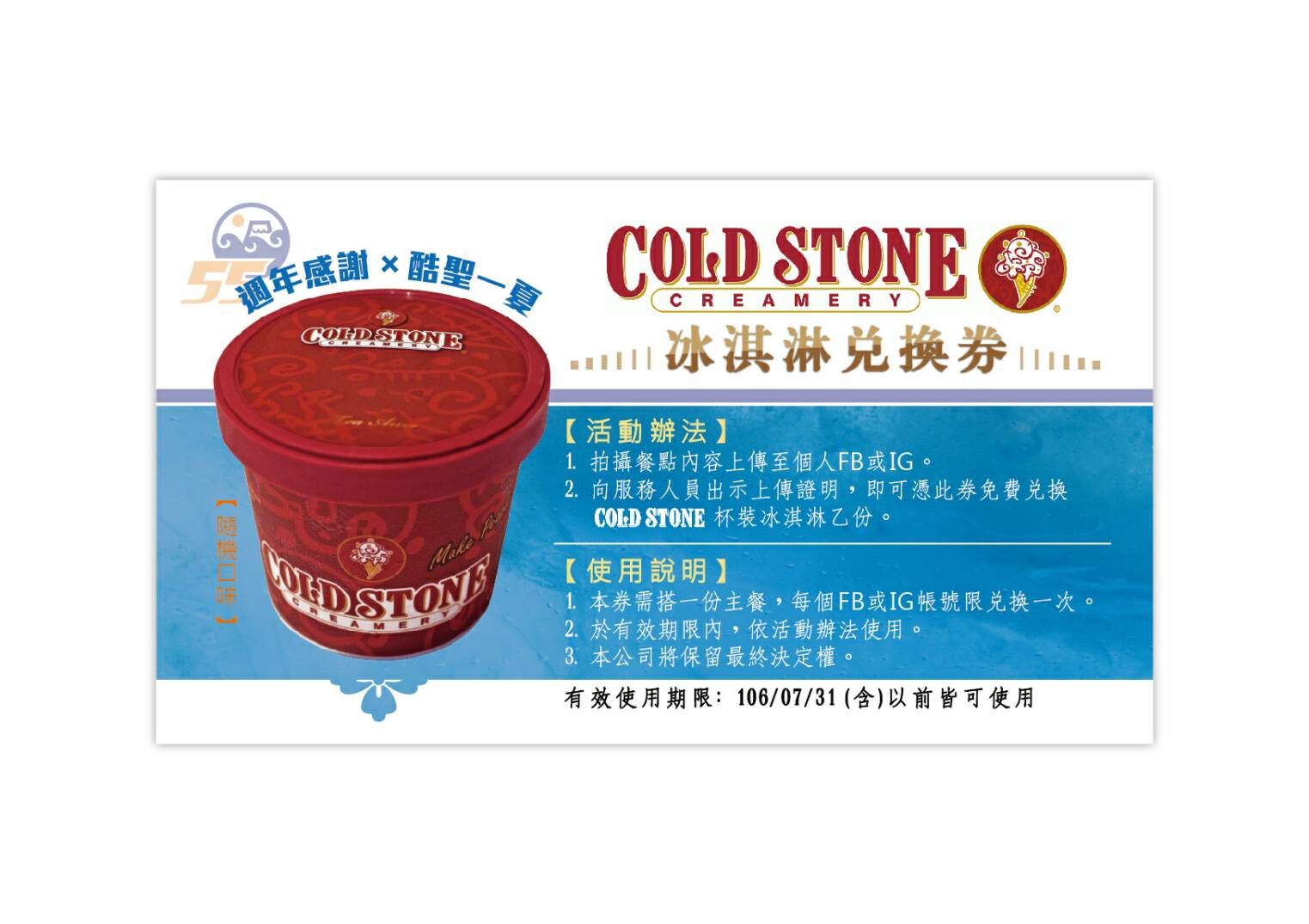 富士山55周年感謝祭,免費cold stone冰淇淋請你吃,數量有限,每日兩時段送完為止