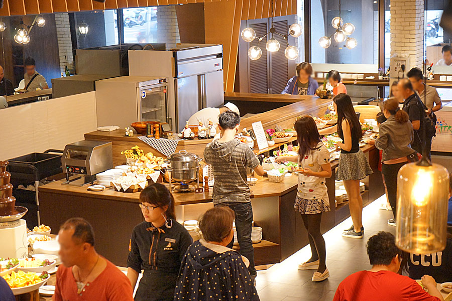 二樓也有一些適合大家庭聚餐、班級聚會或是商務多人聚會的地方,空間明亮,但因為離一樓自助吧區略遠些,所以二樓的用餐時間有兩小時。