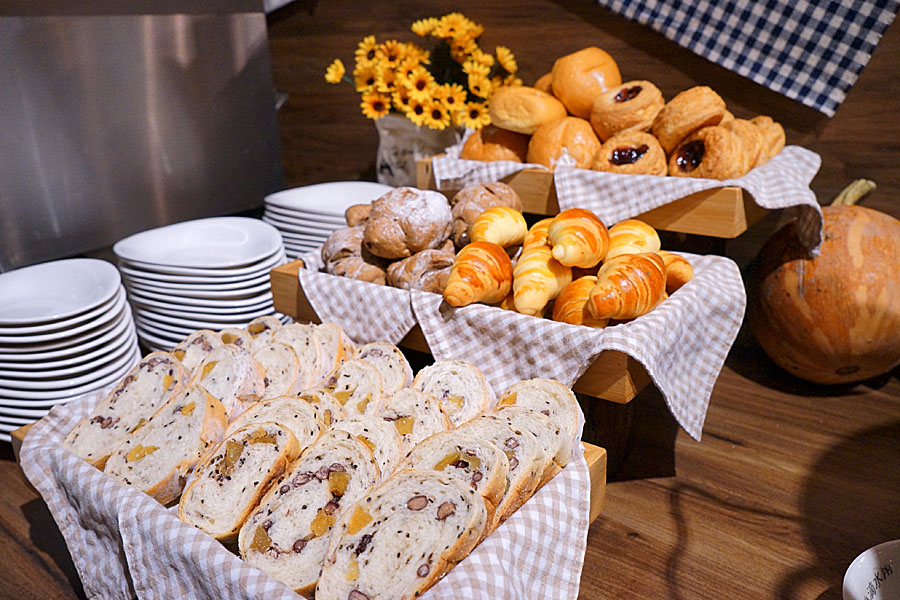 喜歡吃麵包的朋友也有幾款不同的選擇,旁邊則有玉米濃湯與四物雞湯兩種選擇。