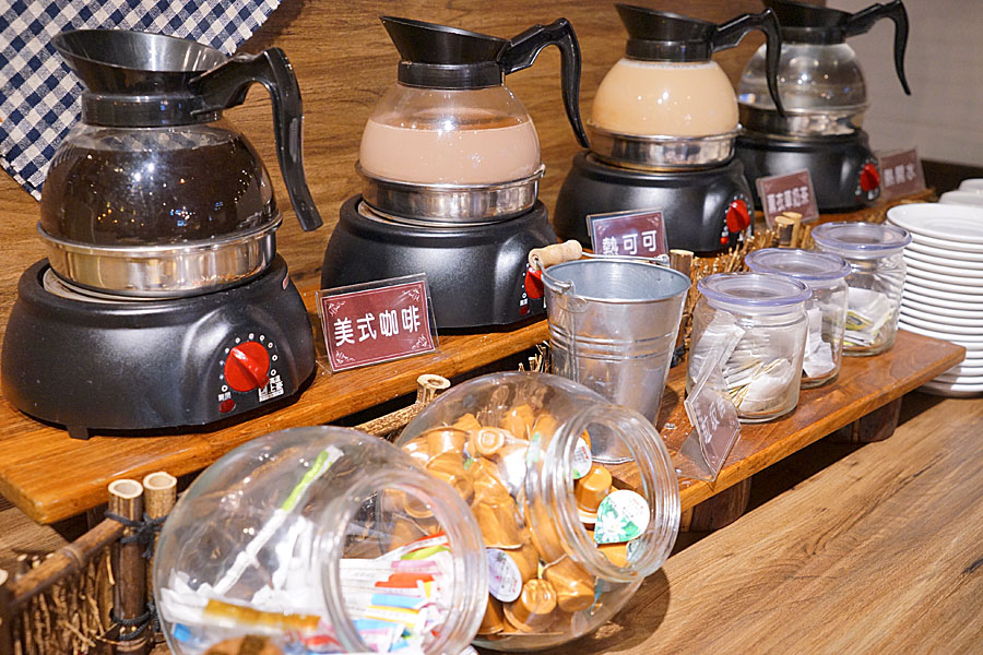 飲料部分有分冷飲跟熱飲區,冷飲部分有一些果醋、柳橙汁、葡萄柚汁或是常見的可口可樂、芬達等飲品,熱飲則提供美式咖啡、熱可可等。