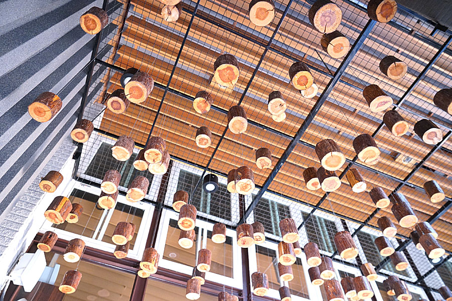 騎樓下的空間抬頭一看,上方的裝置設計還蠻有趣的,第一次看到拿這麼多的木塊當元素。