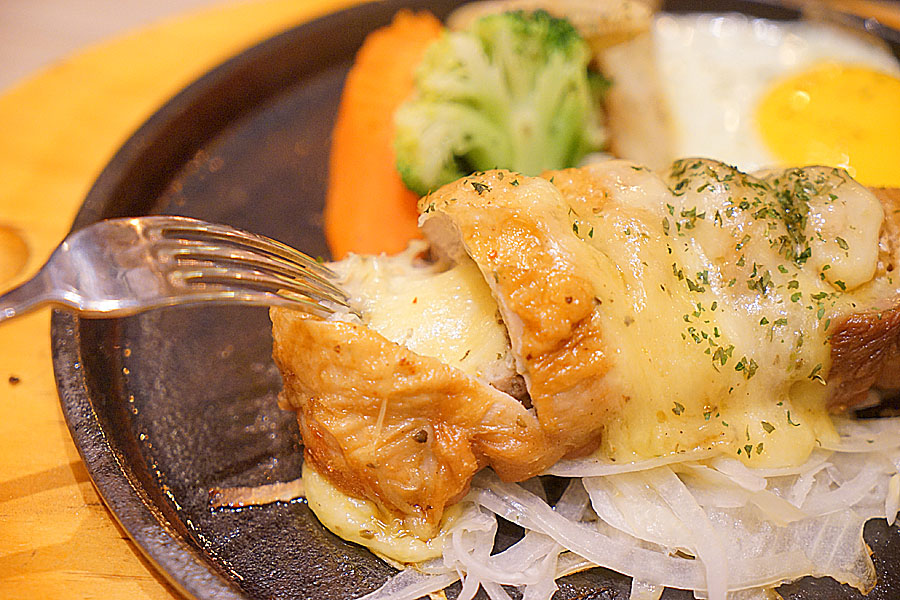 實際上你在稍微將雞肉捲分開後,就會先看到一層濃濃的起士鋪在裡面,更誇張的畫面也即將來到!