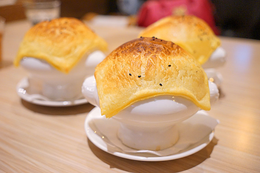 雖然說自助吧也有玉米濃湯,但排餐就是再升級變成酥皮濃湯這樣,料很多,撈上來的時候還發現有蝦仁、珠貝之類的內餡,不是稀疏的那種,很有誠意。