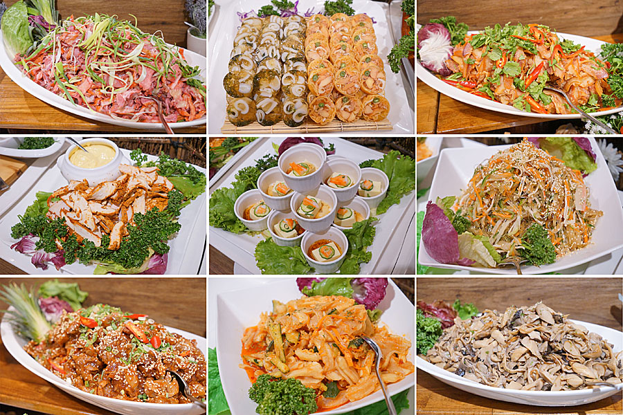 裡面有從前菜的生菜區、涼拌系列、炸物海鮮、飯麵、湯、水果、與各種冰品通通都有。