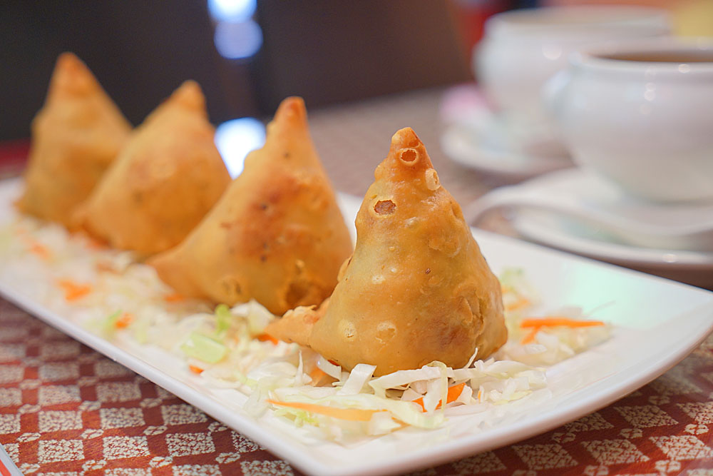 蔬菜黃金餃180元,裡面有馬鈴薯、扁豆泥還有印式香料,外型小巧可愛,附有沾醬,吃起來的口感層次多元,有酥有脆又不油膩,內餡則又有點綿密的口感。