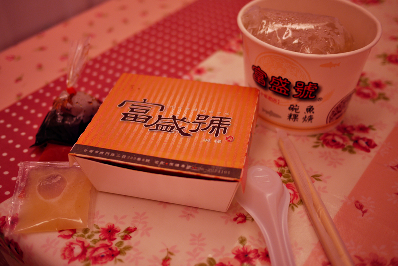 也託阿良的福,我們一口氣吃到了富盛號的碗粿與魚羹,他們外帶的包裝如上圖,上面都有印上店家的名稱。