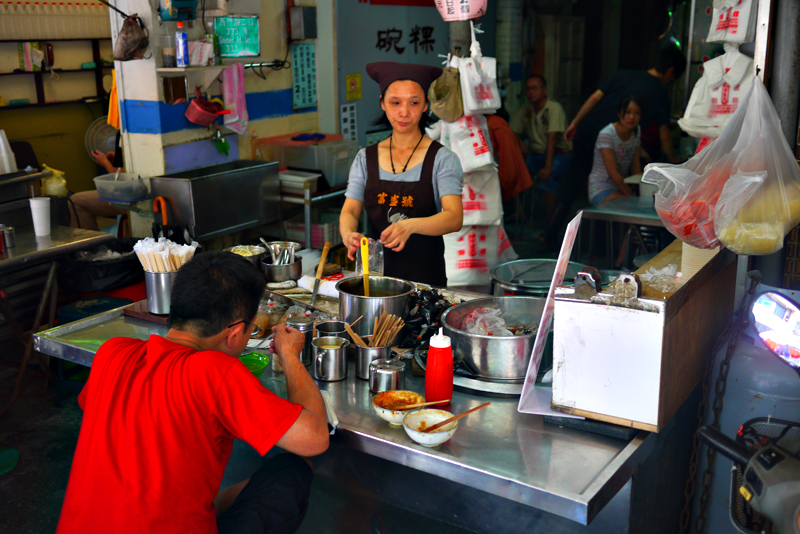 當然也有人很豪邁的坐在老闆娘前大快朵頤,但熊想….坐在這邊應該很有壓力吧!後面都是排隊的人阿….O__O”,一堆人看著一個人吃碗粿的畫面真的很逗趣。