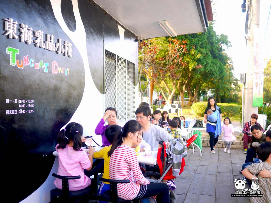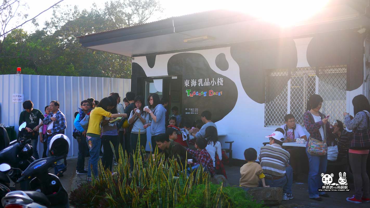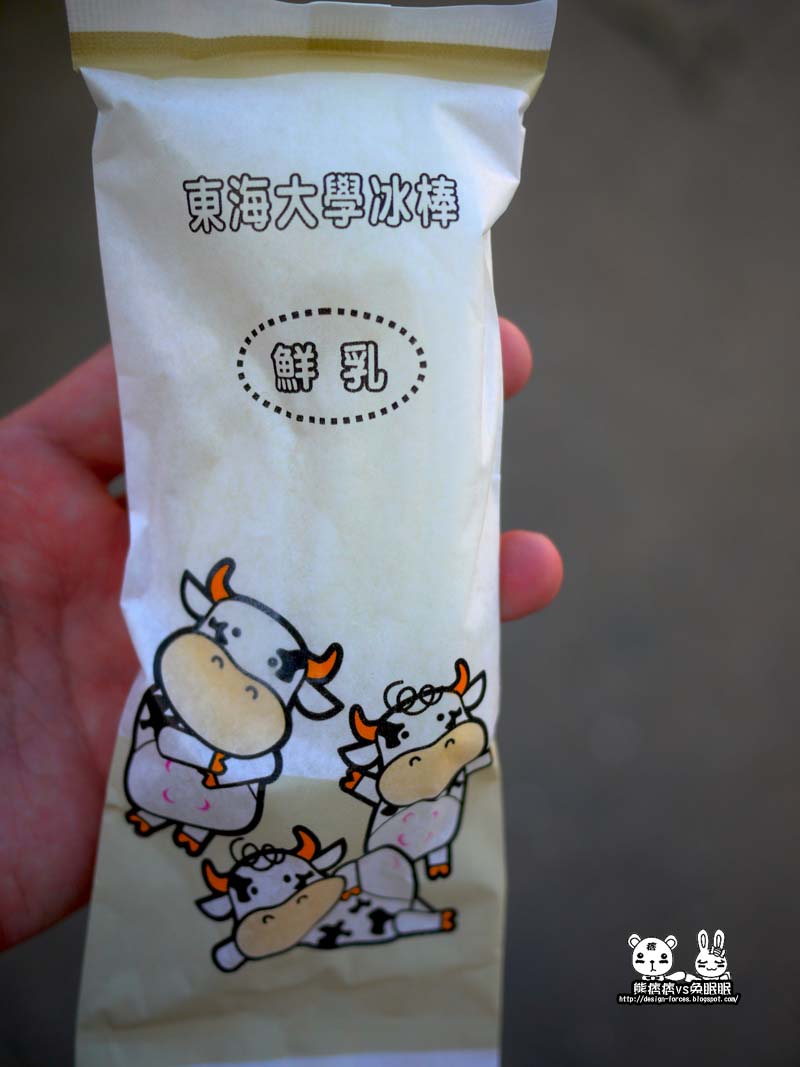 誇張,擠爆人,排隊排到門外,這是那兒呢?黑與白的建築,遠遠一看就像是一棟不會走路的乳牛(廢話=口=…難不成牠會動是逆…),熊痞痞好奇的跟朋友一問,才知道這是東海大學著名的東海乳品小棧,這兒的冰棒可說是東海的驕傲呢,許多外地的朋友都會特地來這朝聖一番,聽完朋友誇大的描述後,也讓熊痞痞心癢癢的加入戰局。